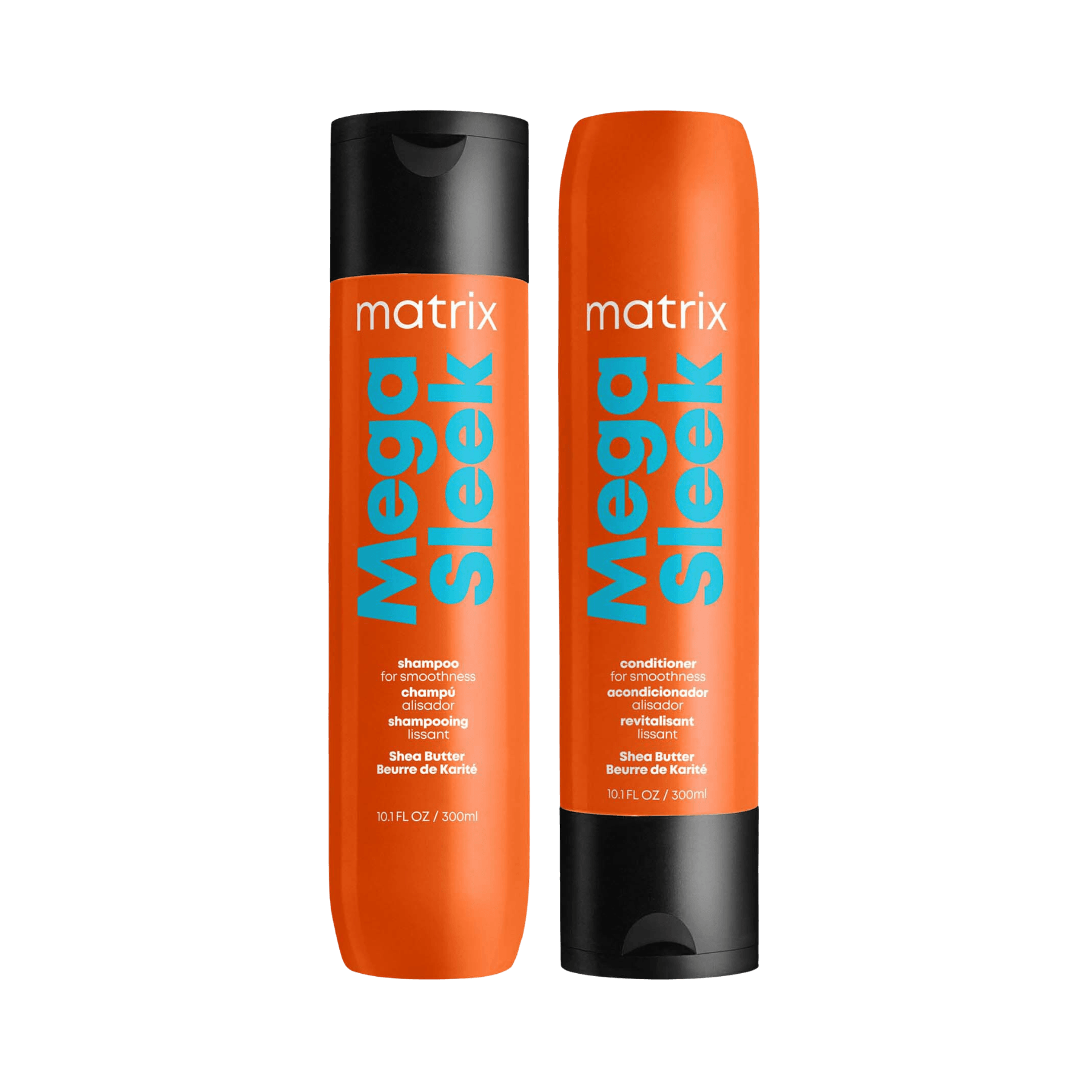 El kit shampoo + acondicionador Mega Sleek de Matrix ayuda a dominar el frizz y controlar el cabello rebelde, logrando un cabello 5 veces más suave desde la primera aplicación. Su fórmula profesional contiene Manteca de Karité, que ayuda a evitar el encrespamiento al proteger el cabello contra la humedad. Además aporta nutrición para un control extremo.